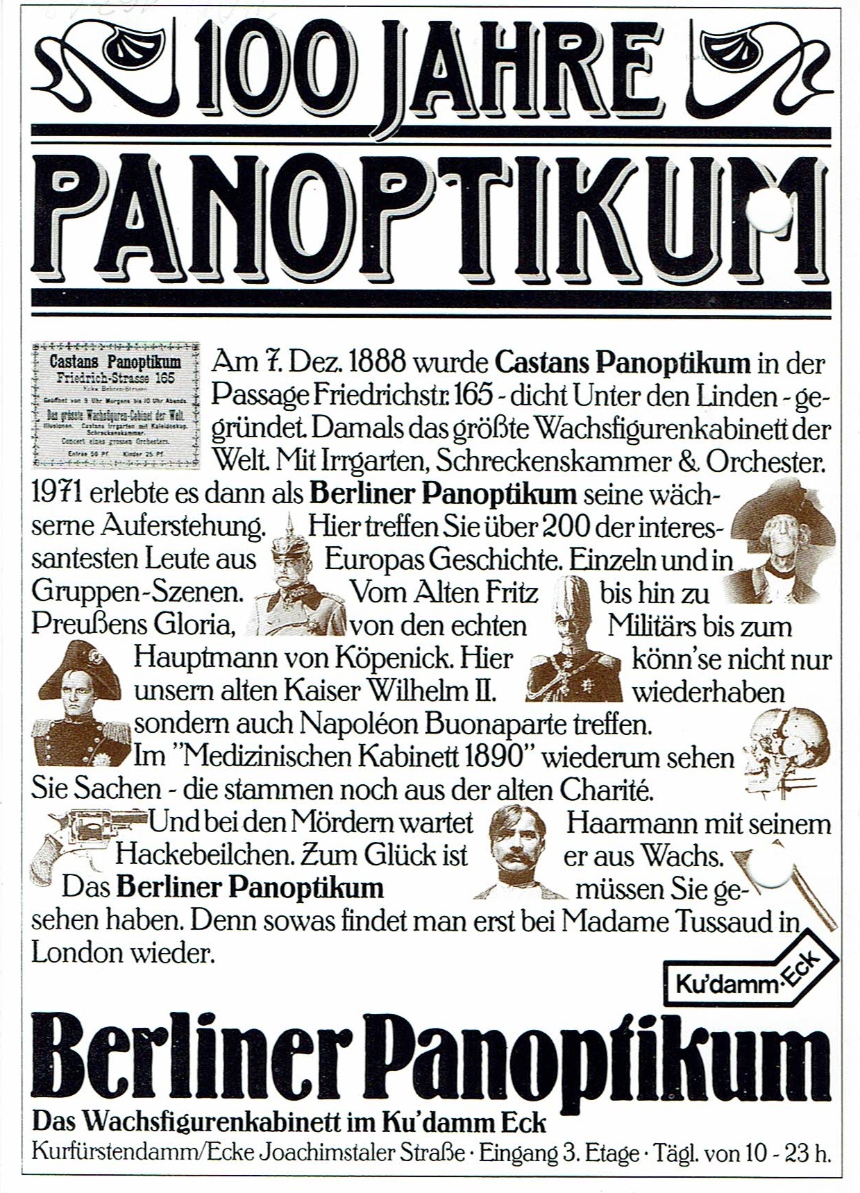 Wir möchten auf dieser Seite an das alte Berliner Panoptikum erinnern.